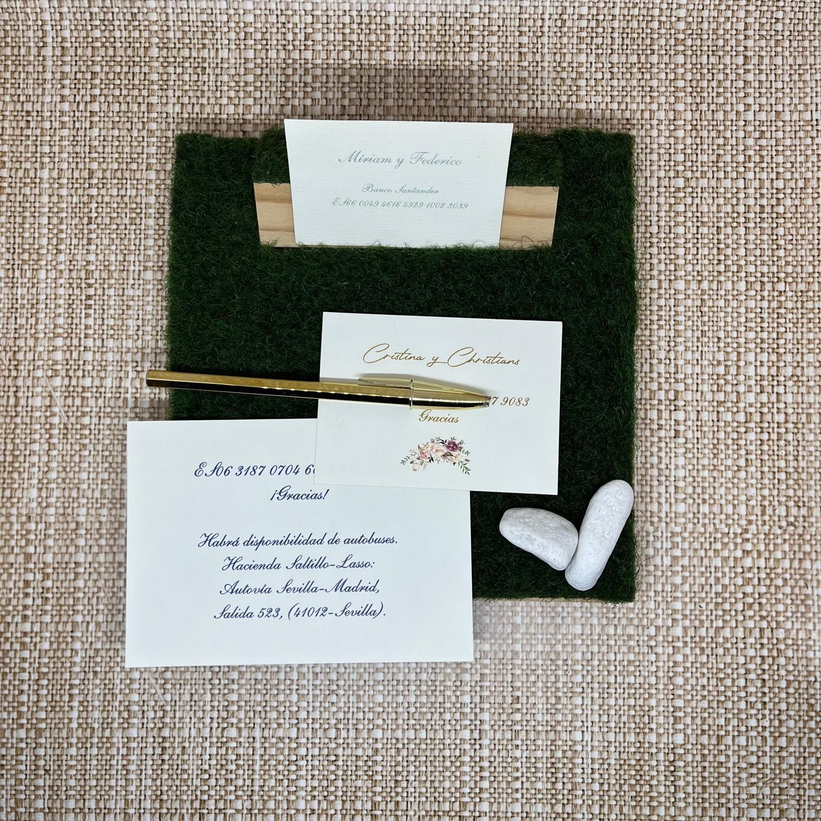 Completa vuestra invitación con cualquiera de los complementos que sea necesario para dar al invitado la máxima información posible y detalles que requieras, topo por supuesto aportando el mismo grado de personalización que vuestra invitación.